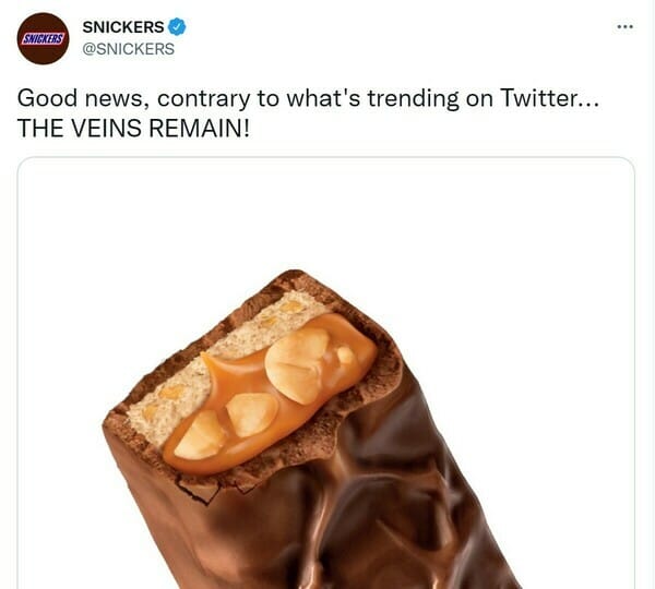 Snicker's social media manager must have questioned her career choice this week after dealing with tweets about 'dick veins' on its chocolate bars...