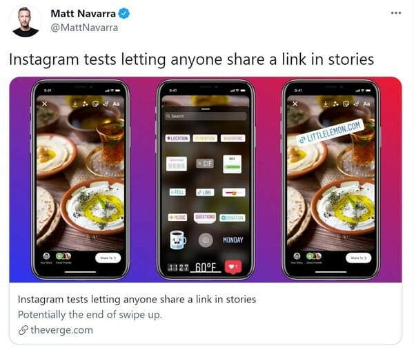 This test will be VERY exciting to a lot of users. Linking out from Instagram has been restricted to only the biggest accounts until now. Is the velvet rope being cut?